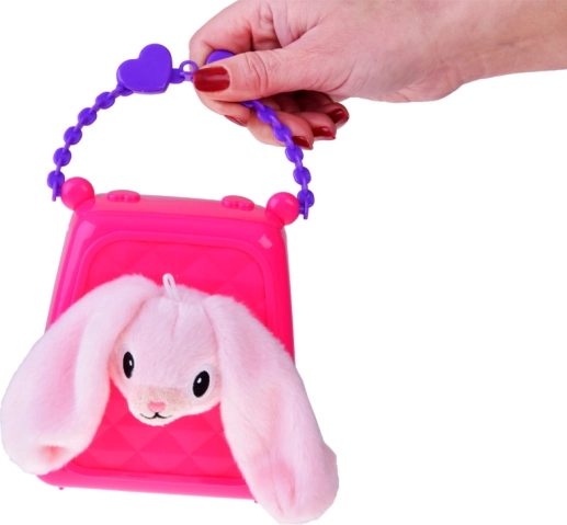 Świetna torebka jest wykonana z plastiku w przyjaznych barwach i ozdobiona trójwymiarowym dekorem oraz uchwytem w kształcie serca. Przez otwór w kształcie serca z torebki wystaje główka królika, co sprawia bardzo urokliwe wrażenie podczas spaceru. Torebka jest wyposażona w zapięcie na sercowe zatrzaski, co podkreśla cały uroczy wygląd. Perfekcyjny dodatek do każdego stroju.