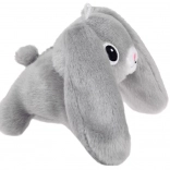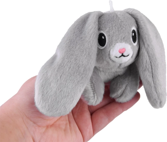 Królik jest wykonany z miękkiego pluszu, ma haftowane oczy i nos, co czyni go bezpiecznym towarzyszem dla dzieci.