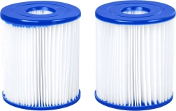 Konserwacja jest prosta: po wyłączeniu pompy wyjmij wkład i przepłucz go silnym strumieniem wody. Jeśli po czyszczeniu nadal pozostaje widocznie zabrudzony, zalecamy jego wymianę, aby zachować optymalną wydajność. Opakowanie zawiera 2 sztuki, więc zawsze masz przygotowany zapas.