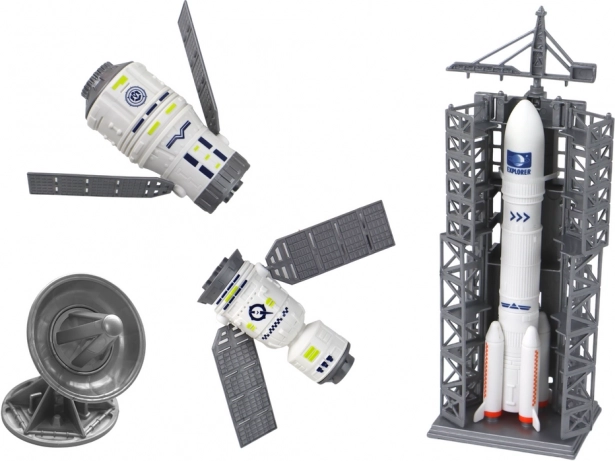 Ten dopracowany w szczegółach zestaw zapewnia dzieciom autentyczne wrażenia z kosmicznych wypraw. Duża rakieta jest gotowa do startu, mniejszy model ze stacją startową pozwala odtwarzać starty i lądowania, a satelity z ruchomymi panelami można umieszczać na różnych „orbitach”.