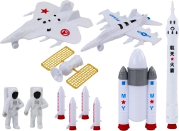 Zestaw figurek kosmonautów zawiera figurki astronautów w unikalnych kombinezonach kosmicznych. Dodatkowo w zestawie znajdują się rakiety o różnych rozmiarach i kształtach.