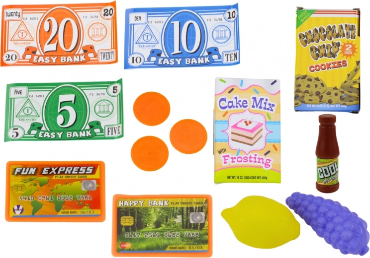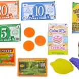 W skład zestawu wchodzi także kasa, która pozwala symulować proces zakupów. Kasa wyposażona jest w cyfrowy wyświetlacz, który wspiera działania matematyczne, takie jak dodawanie i odejmowanie, wspierając nie tylko zabawę, ale również rozwój edukacyjny dzieci.