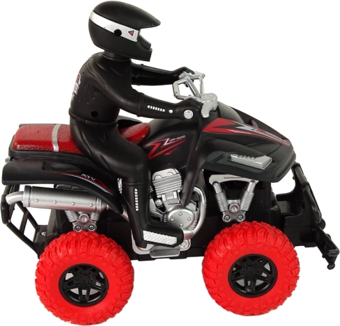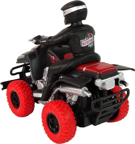 Delektuj się jazdą z wyjątkowym modelem quada sterowanego wygodnym pilotem. Ten model umożliwia pełną kontrolę – możesz jechać do przodu, do tyłu oraz skręcać w prawo i w lewo. Dzięki elastycznym przednim kołom manewrowość pojazdu jest znakomita i realistyczna.