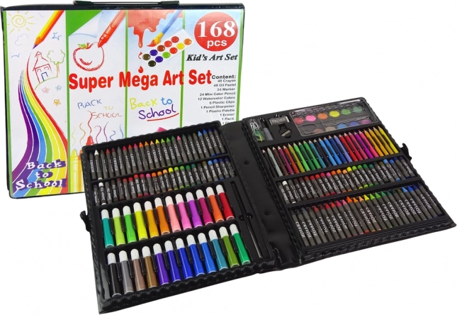 Rozwiń kreatywne umiejętności swojego dziecka dzięki temu kompleksowemu zestawowi artystycznemu. Zawiera farby, kredki, flamastry oraz inne akcesoria, takie jak linijka, gumka i pędzel, zapakowane w praktyczną walizkę, którą łatwo zabrać do przedszkola, na zajęcia plastyczne lub na wycieczki. Z tym zestawem ożywisz każde malowanie i rysowanie.