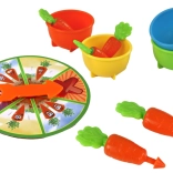 Zakręć strzałką i sprawdź, ile marchewek musisz wyciągnąć. Prosty mechanizm sprawia, że zasady to gra, którą dzieci szybko zrozumieją.