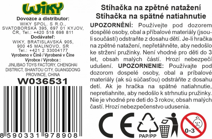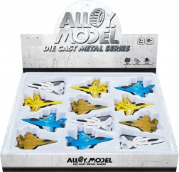 Metalowy odrzutowiec z mechanizmem naciąganym do tyłu o wymiarach 10x7x4 cm jest dostępny w czterech wariantach kolorystycznych: biały, niebieski, zielony i żółty.