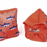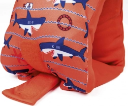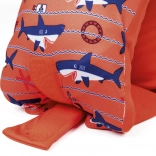 - Świetna widoczność – wyrazisty pomarańczowy kolor i urocze motywy rybek/rekinów.