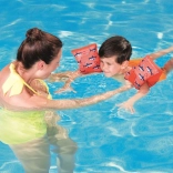 Dziecięce nadmuchiwane rękawki Bestway w rozmiarze S/M zapewniają bezpieczne wsparcie podczas nauki pływania, są wykonane z miękkiego, przyjemnego w dotyku materiału i mają ochronę UPF50. Zawory bezpieczeństwa, regulowany pasek zabezpieczający przed zsuwaniem oraz intensywny pomarańczowy kolor z wesołą grafiką zwiększają widoczność i komfort.