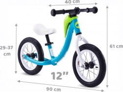 Ustawienie wysokości siodełka w zakresie ok. 31–38 cm zapewnia prawidłową pozycję i dłuższe użytkowanie rowerka biegowego.