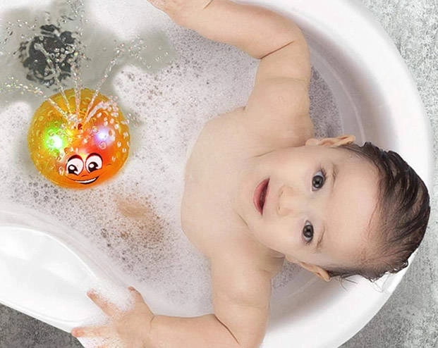 Zabawna pływająca zabawka do wanny, która po zanurzeniu sama się uruchamia, tworzy mini fontannę i świeci kolorowymi diodami LED. Teksturowana powierzchnia z wypustkami wspiera percepcję sensoryczną i zamienia kąpiel w radosną zabawę.