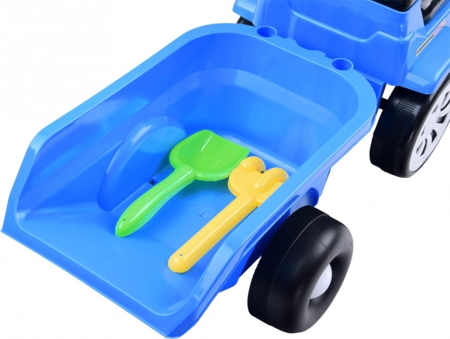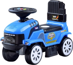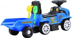 Dziecięcy jeździk w kształcie traktora z odczepianą przyczepą zapewnia zabawę w domu i w ogrodzie. Oferuje efekty świetlne, wesołe melodie na kierownicy, schowek pod siedzeniem oraz ergonomiczne wykonanie dla bezpiecznej jazdy. W zestawie znajdują się zabawki – łopatka i grabki oraz możliwość podłączenia przyczepy.