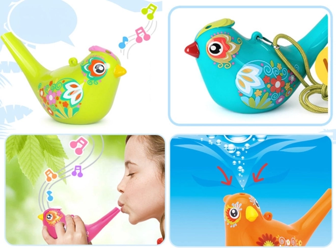 Ten wodny gwizdek w kształcie ptaszka jest lekki, wytrzymały i idealny dla dzieci. Bez wody wydaje czysty, jasny ton; po napełnieniu niewielką ilością wody ptaszek zaczyna melodyjnie ćwierkać. Głośność i wysokość dźwięku łatwo regulujesz ilością wody oraz siłą dmuchnięcia.