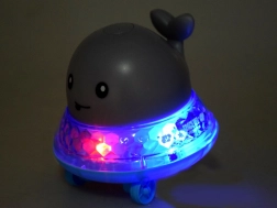 Poza wodą posadź wieloryba na platformie, przełącz on/off i obserwuj jazdę w rytmie wesołej muzyki z efektami świetlnymi.
