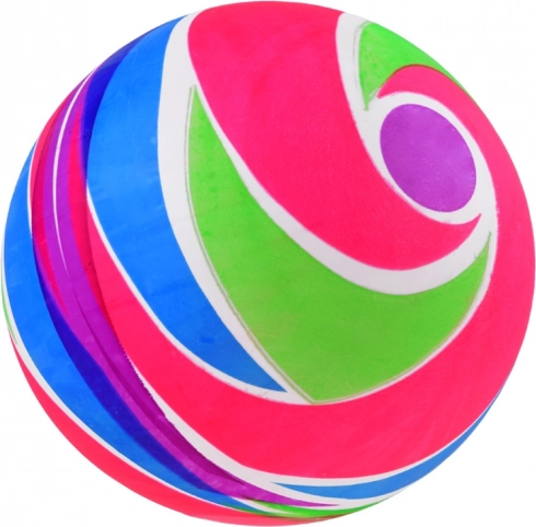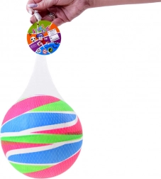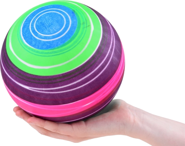 Piłka ma wyraziste tęczowe barwy, które spodobają się zarówno dzieciom, jak i dorosłym.