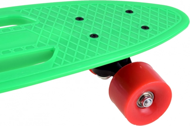 Solidne plastikowe korpus z ażurowymi wycięciami umożliwia bezpieczne i wygodne przenoszenie skateboardu przez dzieci.