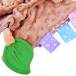 Zielony silikonowy listek delikatnie masuje obolałe dziąsła podczas ząbkowania.