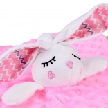 Miękka kocyk-przytulanka z główką króliczka daje poczucie bezpieczeństwa i pomaga dziecku łatwiej zasnąć w domu i w podróży.