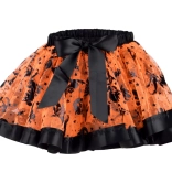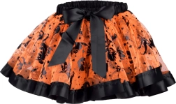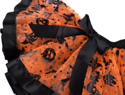 - Pomarańczowa spódniczka tutu z czarną, satynową lamówką i nadrukami halloweenowych motywów.