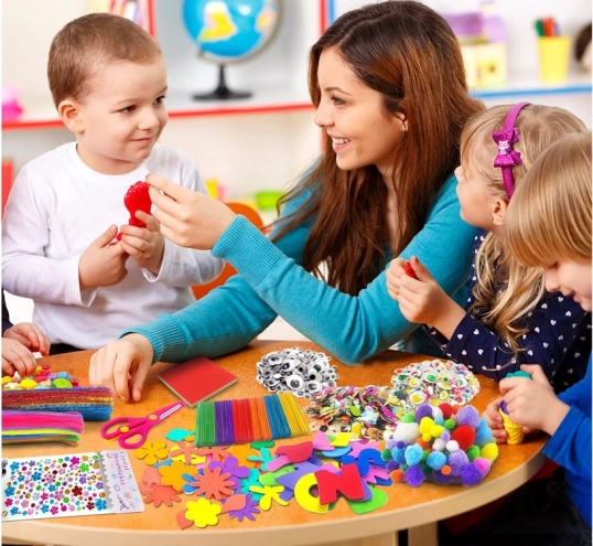 Daj przestrzeń dziecięcej wyobraźni z tym zestawem kreatywnym. Zawiera różne komponenty, takie jak oczka, piórka, filc i inne, które pozwalają tworzyć unikalne dzieła. Szeroka gama kolorów, kształtów i tekstur oferuje nieskończone możliwości wyrażania kreatywności.
