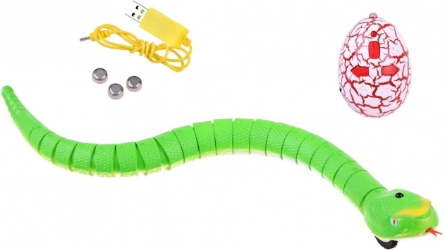 W komplecie znajdują się: wąż RC, pilot w kształcie jajka, kabel do ładowania USB oraz baterie AG13 – możesz zacząć zabawę od razu po rozpakowaniu.