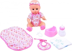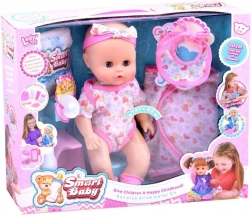 Urocza interaktywna lalka z zamykanymi oczkami i realistycznymi dźwiękami niemowlęcia zapewni dzieciom godziny opieki i zabawy. Potrafi pić z buteleczki, a potem siusia do nocniczka, ma ruchome ręce i nogi, a jej oczka zamykają się podczas „snów”. W zestawie znajduje się bogaty komplet akcesoriów do karmienia i przewijania.