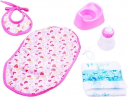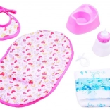 W opakowaniu znajdziesz wszystko do pełnej opieki – śliniaczek, buteleczkę, smoczek, pieluszkę i nocnik. Przygotuj lalkę do karmienia i przewijania.