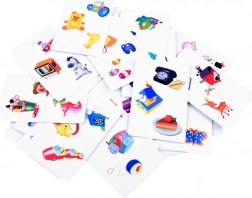 Zasady gry:Gra rozpoczyna się od złożenia planszy na środku pola gry. Następnie rozdaje się karty w zależności od liczby uczestników: 2 osoby – po 8 kart dla każdego, 3 osoby – po 6 kart, 4 osoby – po 5 kart. Karty pozostają odwrócone obrazkiem do dołu – nie wolno na nie podglądać. Każdy gracz otrzymuje 3 figurki do zaznaczania znalezionych elementów, a także wyznacza się osobę, która po każdej rundzie będzie rozdawać żetony.