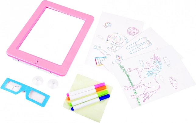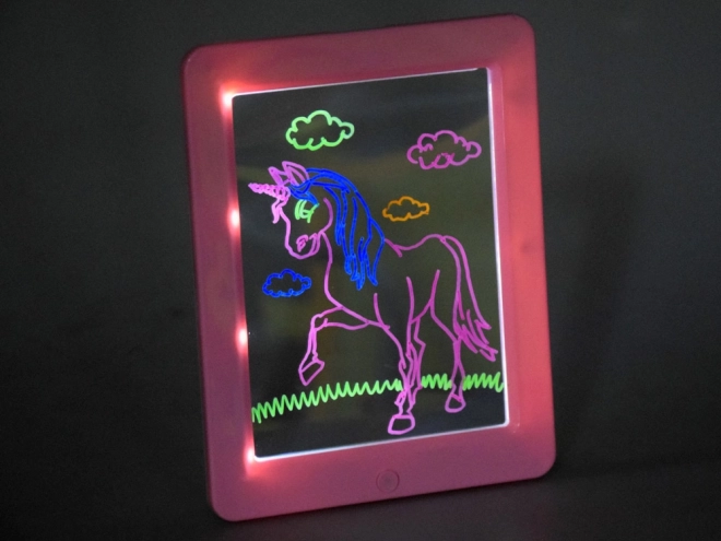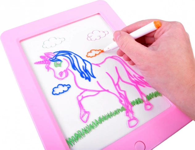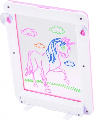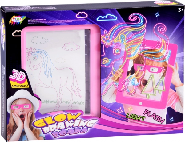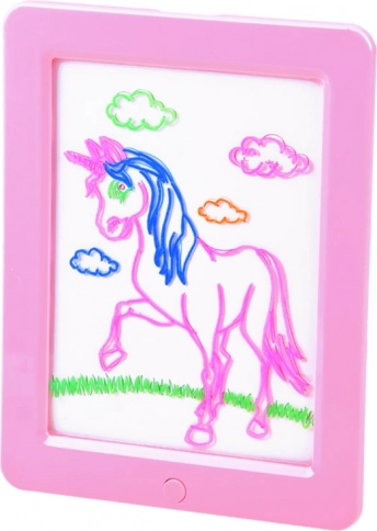 Ta świetlna tablica jest idealna dla małych artystów, którzy lubią rysować i odkrywać nowe efekty. Obrazy można tworzyć dowolnie lub według dołączonych kart, następnie wystarczy włożyć je w ramkę z podświetleniem LED i założyć okulary 3D, aby uzyskać imponujący efekt przestrzenny.