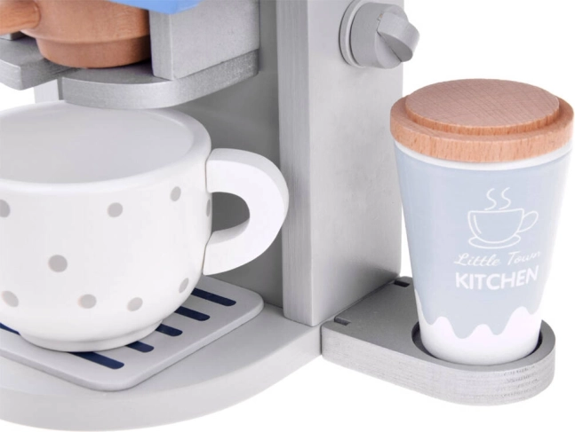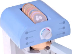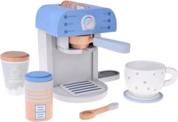 Zabawa z ekspresem do kawy wspiera kreatywność, uczy o codziennych czynnościach i rozwija drobną motorykę przez manipulację akcesoriami.