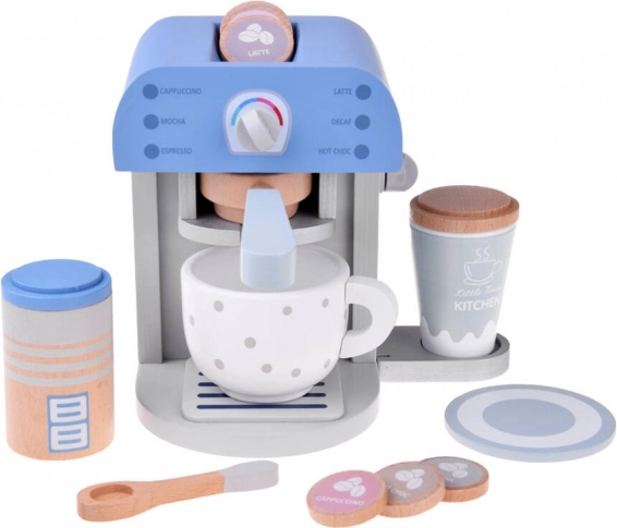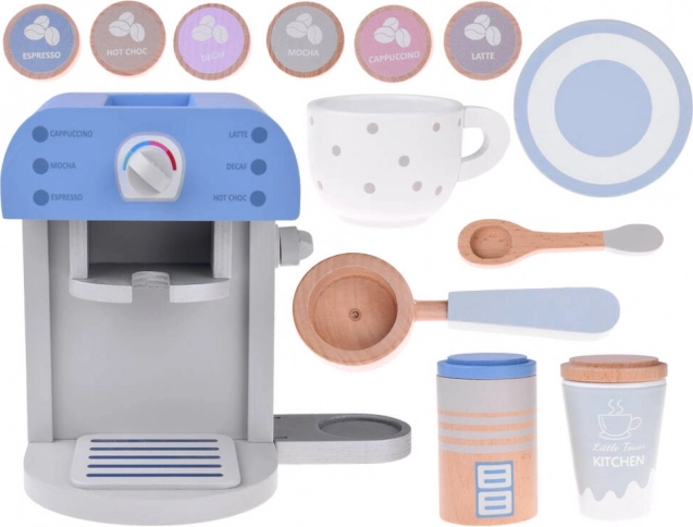 Drewniany ekspres do kawy dla dzieci w eleganckim niebieskim kolorze to idealna zabawka do każdej dziecięcej kuchni. Ten stylowy i solidnie wykonany zestaw zawiera ekspres do kawy i dodatki, które zapewniają zabawę i edukacyjną rozrywkę.