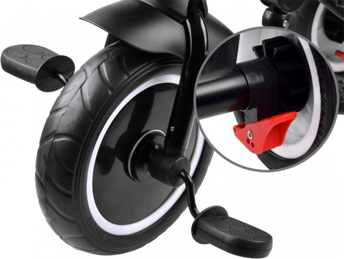 Regulowana wysokościowo rączka rodzica jest połączona z kierownicą, dzięki czemu masz pełną kontrolę nad trójkołowcem nawet w wąskich uliczkach.