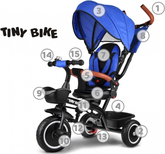 Praktyczny dziecięcy trójkołowiec 3w1 TINY BIKE rośnie wraz z Twoim dzieckiem od 6 miesięcy do 5 lat. Oferuje połączenie wózka, pchacza i trójkołowca w jednym. Dzięki obrotowemu siedzisku, 5‑punktowym pasom, składanemu daszkowi oraz rączce dla rodzica z płynnym sterowaniem zapewnia maksymalne bezpieczeństwo, komfort i uniwersalność na co dzień.