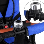 obrotowe siedzisko, 5‑punktowe pasy, barierka, składany daszek z siateczką, podnóżki, pedały, dzwonek, 2 koszyki, torba dla rodzica