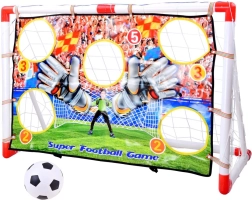 Ta dziecięca bramka piłkarska z tarczą strzelecką to świetne narzędzie do zabawnego treningu i pierwszych piłkarskich kroków. Dzięki lekkiej plastikowej konstrukcji łatwo ją przenosić i szybko montować, a kolorowa plachta z ponumerowanymi otworami motywuje do ćwiczenia celności i techniki strzału.