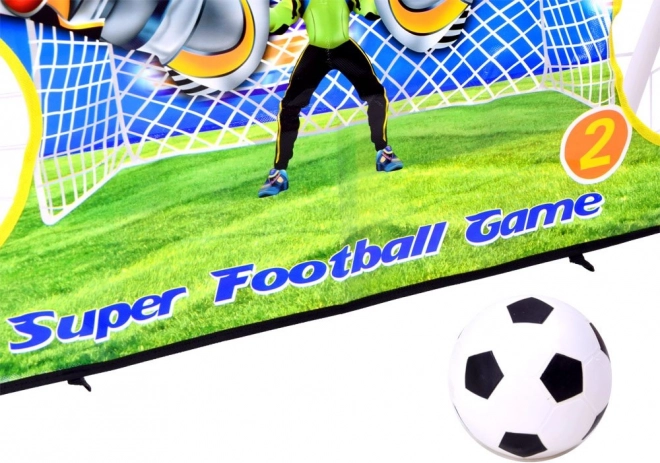 Kolorowa plachta z otworami celowniczymi w atrakcyjny sposób wspiera rozwój techniki i celności strzałów u małych piłkarzy.