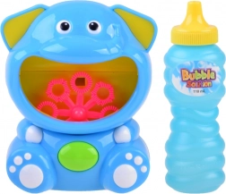 W komplecie znajduje się plastikowy automat w kształcie słonia oraz buteleczka z roztworem do baniek – możesz zacząć od razu po włożeniu baterii.