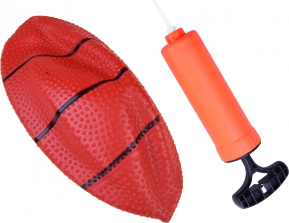 W komplecie znajdują się piłka, pompka, kolorowa siatka i akcesoria montażowe – możesz zacząć grać od razu po rozpakowaniu.
