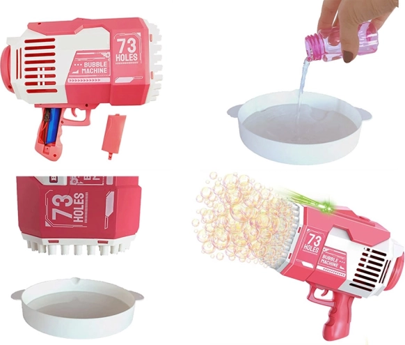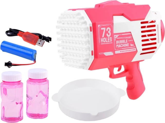 Ten elektryczny pistolet do baniek w mgnieniu oka tworzy tysiące tęczowych banieczek. Wystarczy wlać roztwór do miseczki, zanurzyć wylot pistoletu i nacisnąć spust. Dzięki zasilaniu z akumulatora ładowanego przez USB zabawka jest zawsze gotowa do akcji i oszczędza wymianę baterii.