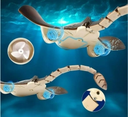 Ta pływająca manta zdalnie sterowana wiernie naśladuje ruch prawdziwej rajy. Zaawansowana mechanika ogona i płetw piersiowych zapewnia realistyczne pływanie i łatwe sterowanie w każdym kierunku. Idealna na letnie zabawy w wodzie oraz domowe eksperymenty w wannie.