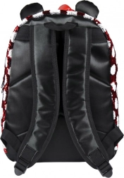 Plecak z charakterystycznym wzorem Minnie w czerwono-białej kombinacji w kropki, ozdobiony czerwoną kokardą i błyszczącymi uszami, jest naprawdę magiczny.