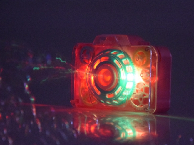Realistyczny dźwięk migawki i kolorowe światełka budują atmosferę „prawdziwego” fotografowania i potęgują wrażenia z zabawy.