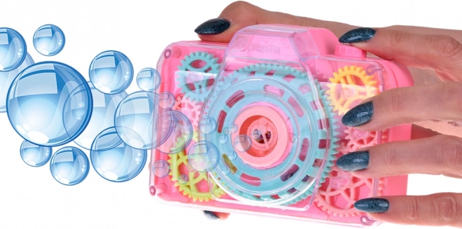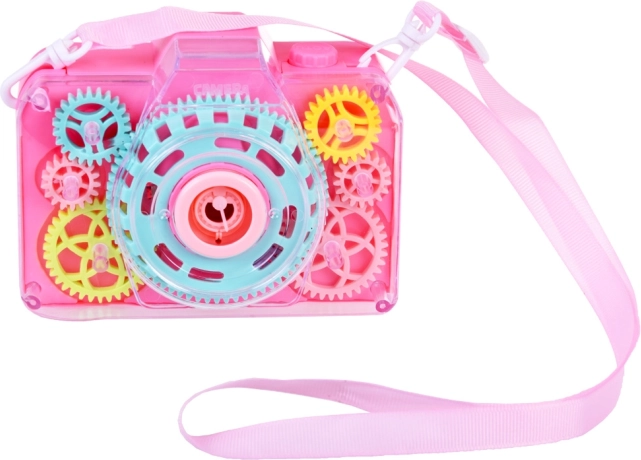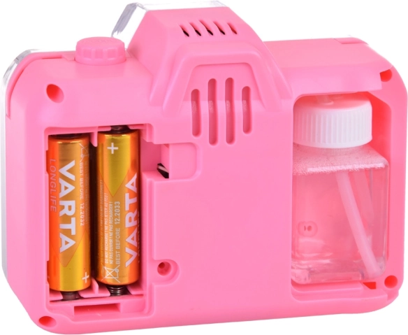 Ten zabawny bańkowy aparat fotograficzny zapewnia dzieciom magiczny efekt baniek połączony z realistycznym doświadczeniem robienia zdjęć. Po naciśnięciu spustu uruchamiają się efekty świetlne, dźwięk migawki i z otworu wydmuchiwane są mydlane bańki, tworząc czarującą atmosferę podczas zabawy w domu i na zewnątrz.