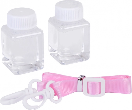 - Aparat, sznurek na szyję, 2× buteleczka z płynem do baniek