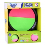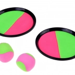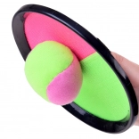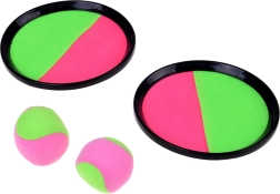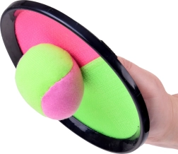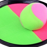 Podzielona powierzchnia chwytająca w neonowej zieleni i różu z rzepem natychmiast łapie piłeczkę – idealna do treningu celności i refleksu.