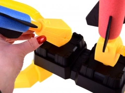 Zestaw zawiera: podstawę wyrzutni, 4 ramiona katapulty, 2 głowice, 2 rury, 2 komory powietrzne, 6 rakiet piankowych i naklejki dekoracyjne. Łatwy do montażu i demontażu dla wygodnego użycia.