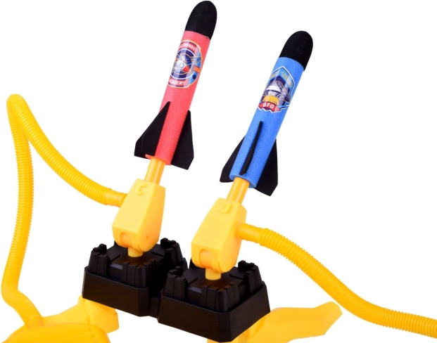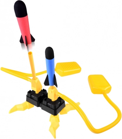 Dzieci mogą łatwo odpalać rakiety za pomocą nóg, co oferuje im interaktywną i fizyczną zabawę. Wspiera kreatywność i aktywność fizyczną.