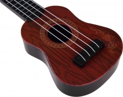 Grafika imitująca drewnianą powierzchnię nadaje ukulele wygląd prawdziwego instrumentu i motywuje dzieci do grania.