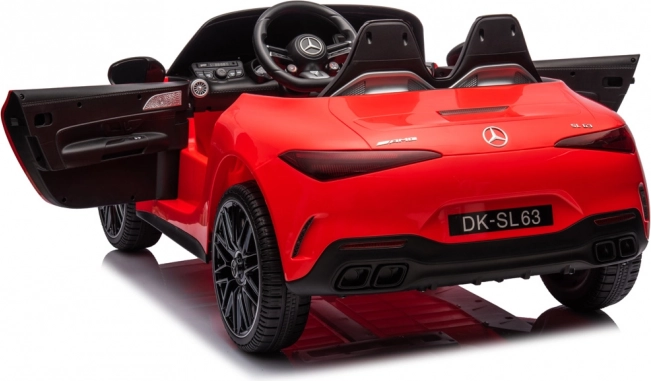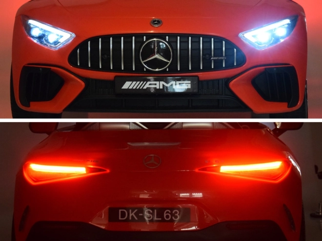 Stylowy dziecięcy elektryczny samochodzik MERCEDES SL 63 AMG zapewnia realistyczne wrażenia z jazdy dzięki 4 silnikom 24V 200W, akumulatorowi 24V 7Ah, sprężystemu zawieszeniu oraz rodzicielskiemu zdalnemu sterowaniu 2,4 GHz. Docenisz miękkie koła EVA, skórzane siedzisko z 5‑punktowym pasem, oświetlenie LED oraz panel multimedialny z radiem, USB i MP3.