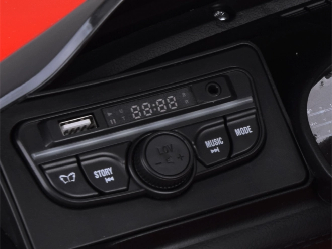 Panel multimedialny oferuje wgrane melodie i bajki (EN), radio FM, złącza USB i MP3. Dla komfortu i bezpieczeństwa są miękkie opony EVA, wygodne siedzisko z eko‑skóry oraz 5‑punktowy pas bezpieczeństwa. Światła LED z przodu i z tyłu można wyłączyć przyciskiem na desce. Hamulec elektryczny automatycznie zatrzymuje pojazd po zwolnieniu pedału.