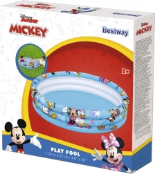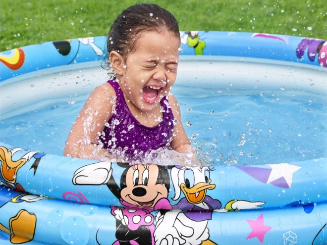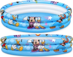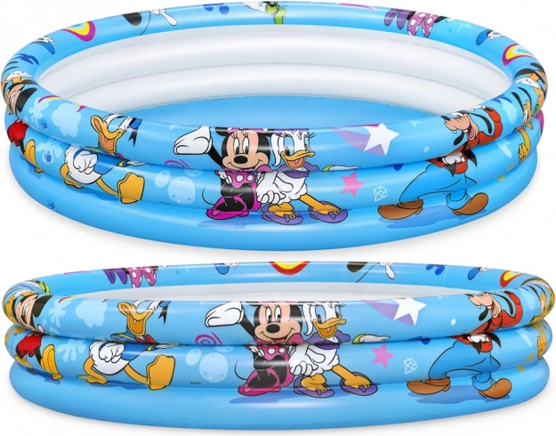 Lekki i przenośny dmuchany basen Bestway z licencjonowaną grafiką MICKEY & FRIENDS został stworzony do dziecięcych zabaw w wodzie w ogrodzie. Trzy niezależne pierścienie utrzymują kształt i pomagają lepiej zatrzymywać powietrze, a miękki, testowany winyl zapewnia komfort oraz odporność na codzienne użytkowanie.
